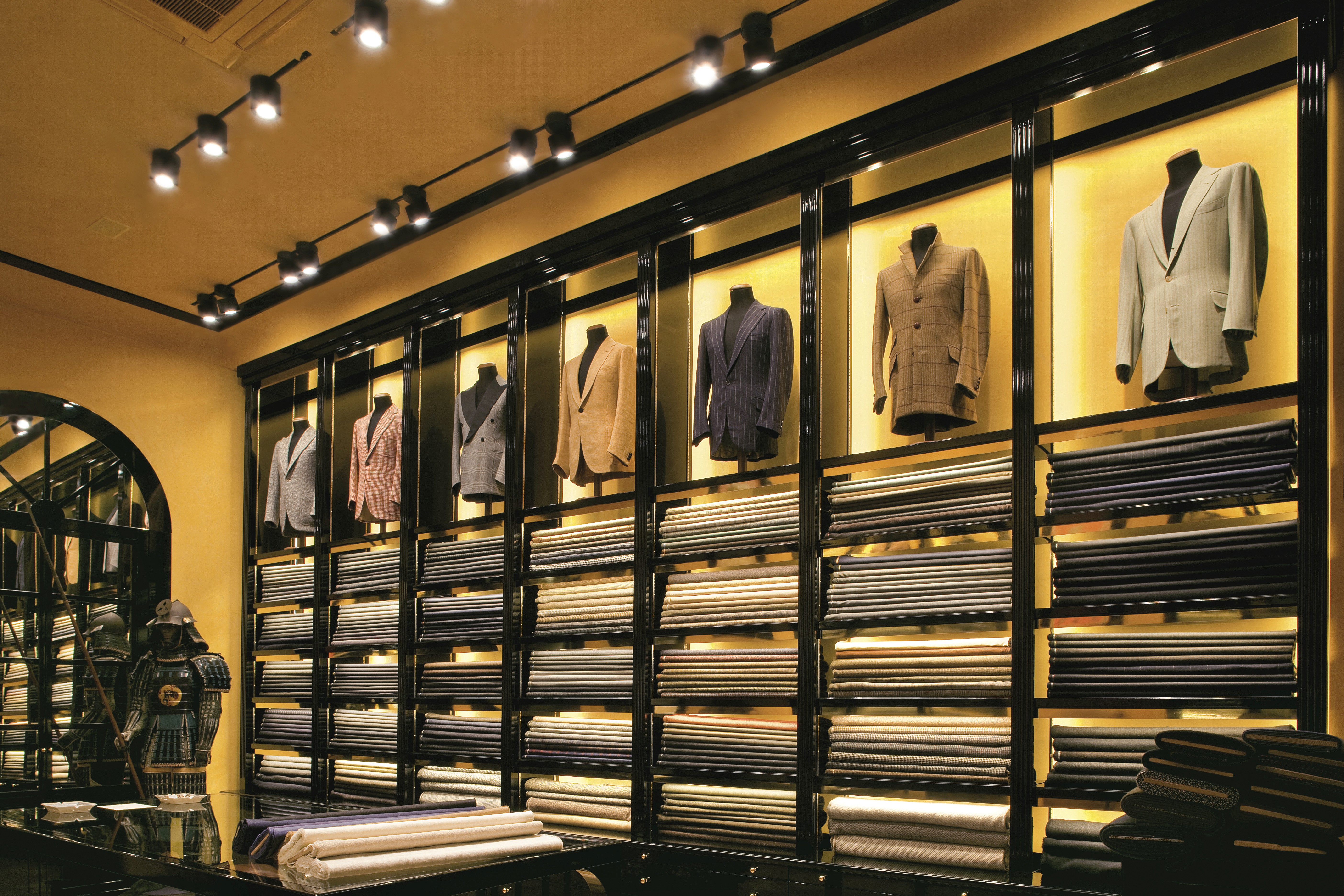 Nella progettazione è stata rivolta particolare attenzione alla scelta delle sorgenti luminose. La luce deve ricreare un’atmosfera accogliente e calda che da sempre contraddistingue il brand di moda, sin dall’antica sartoria, ed essere caratterizzata da un’elevata resa cromatica in grado di valorizzare la merce e renderne in maniera fedele i colori e la tramatura dei pregiati filati.
