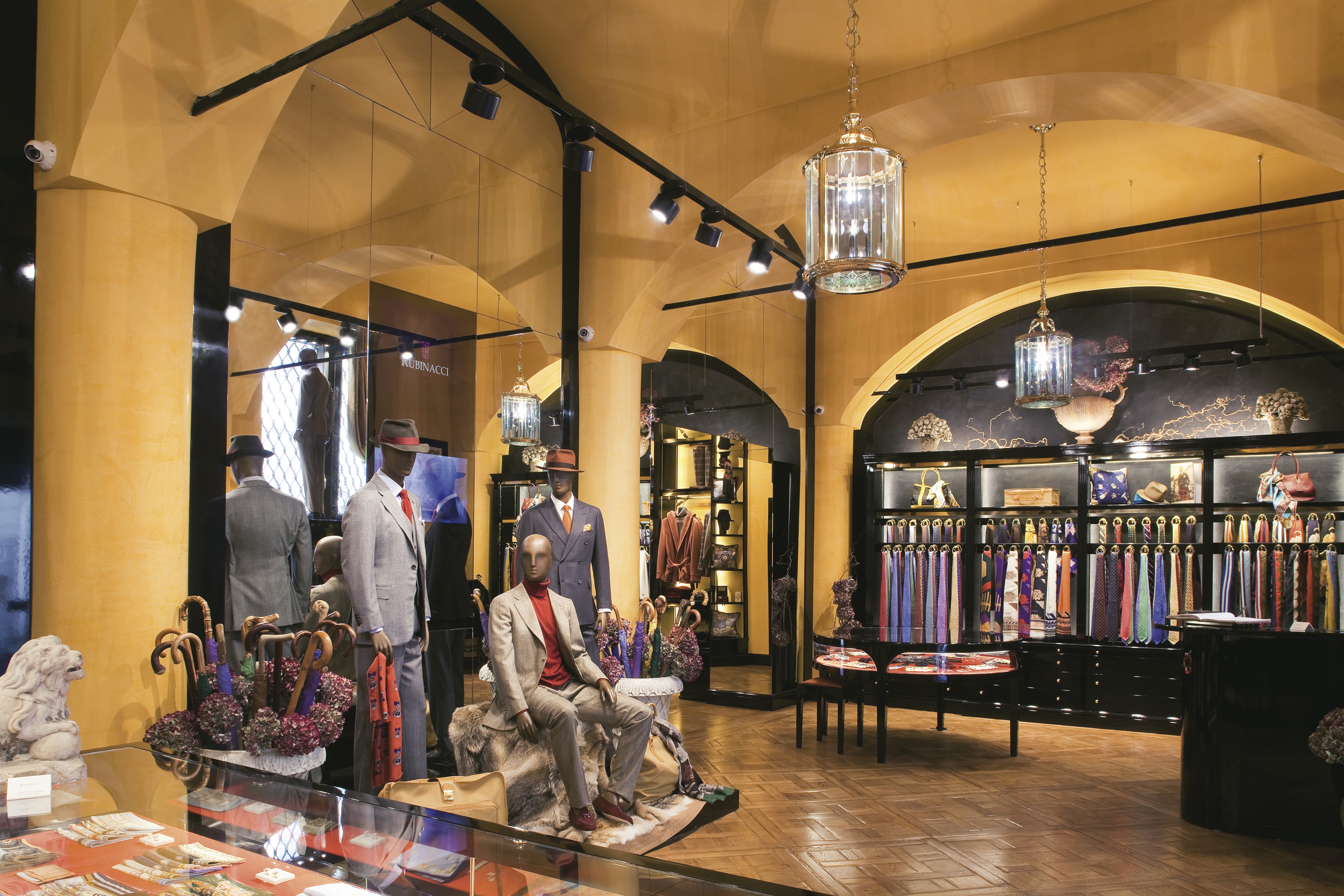 Anche nel negozio di Milano, l’Atelier Rubinacci si propone di trasmettere lo stile e l’eleganza che contraddistinguono i capi. In primo luogo quindi l’illuminazione si presenta come biglietto da visita dell’Atelier e ha l’obiettivo di rendere immediatamente riconoscibile al cliente il genere e la qualità dell’abbigliamento.
