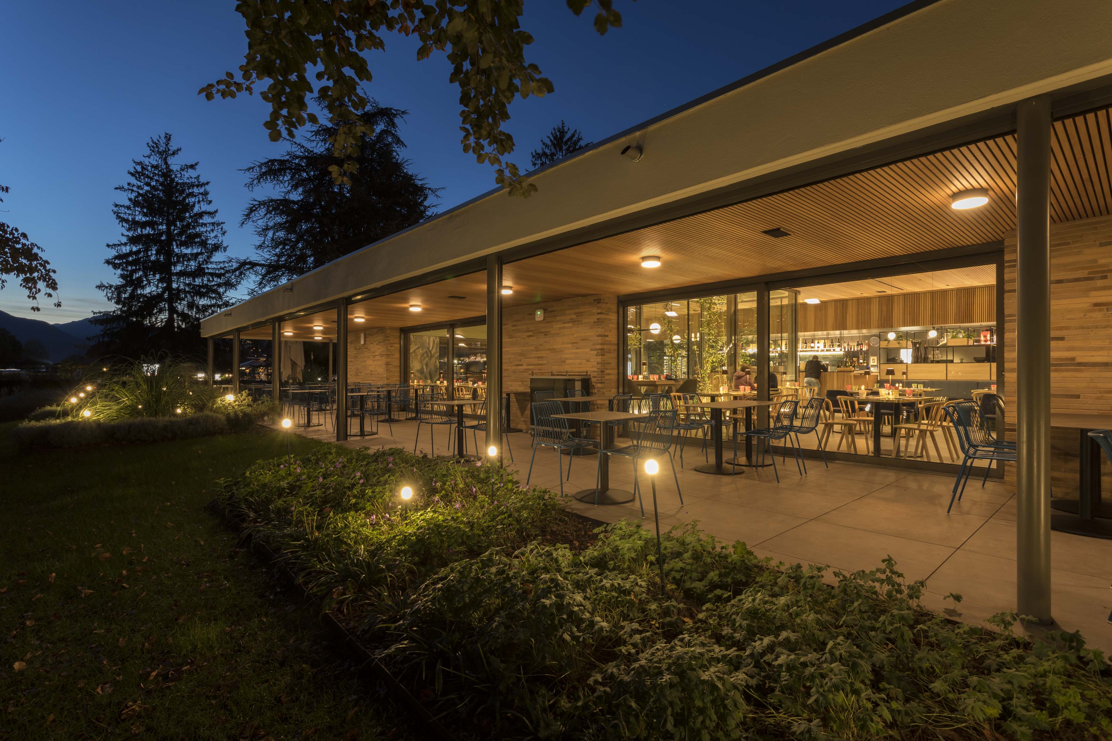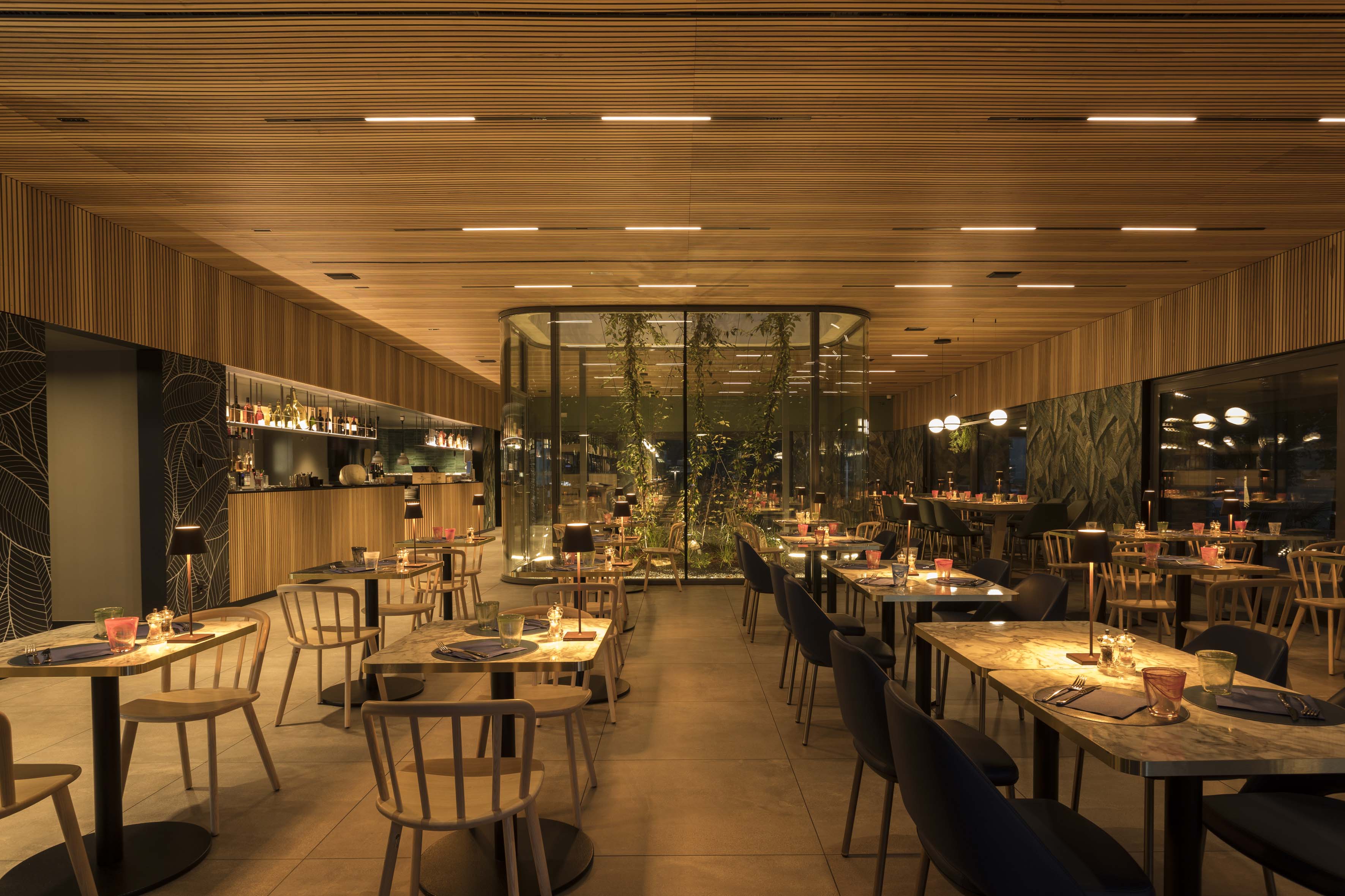 La luce è stata pensata come elemento narrativo e funzionale, in grado di accompagnare l’ospite in tutte le fasi dell’esperienza: dall’ingresso alla sala interna, fino alla veranda affacciata sul verde. Un uso calibrato di temperature colore differenziate, combinato con ottiche controllate, consente di creare gerarchie visive efficaci, senza mai risultare invasivi.
