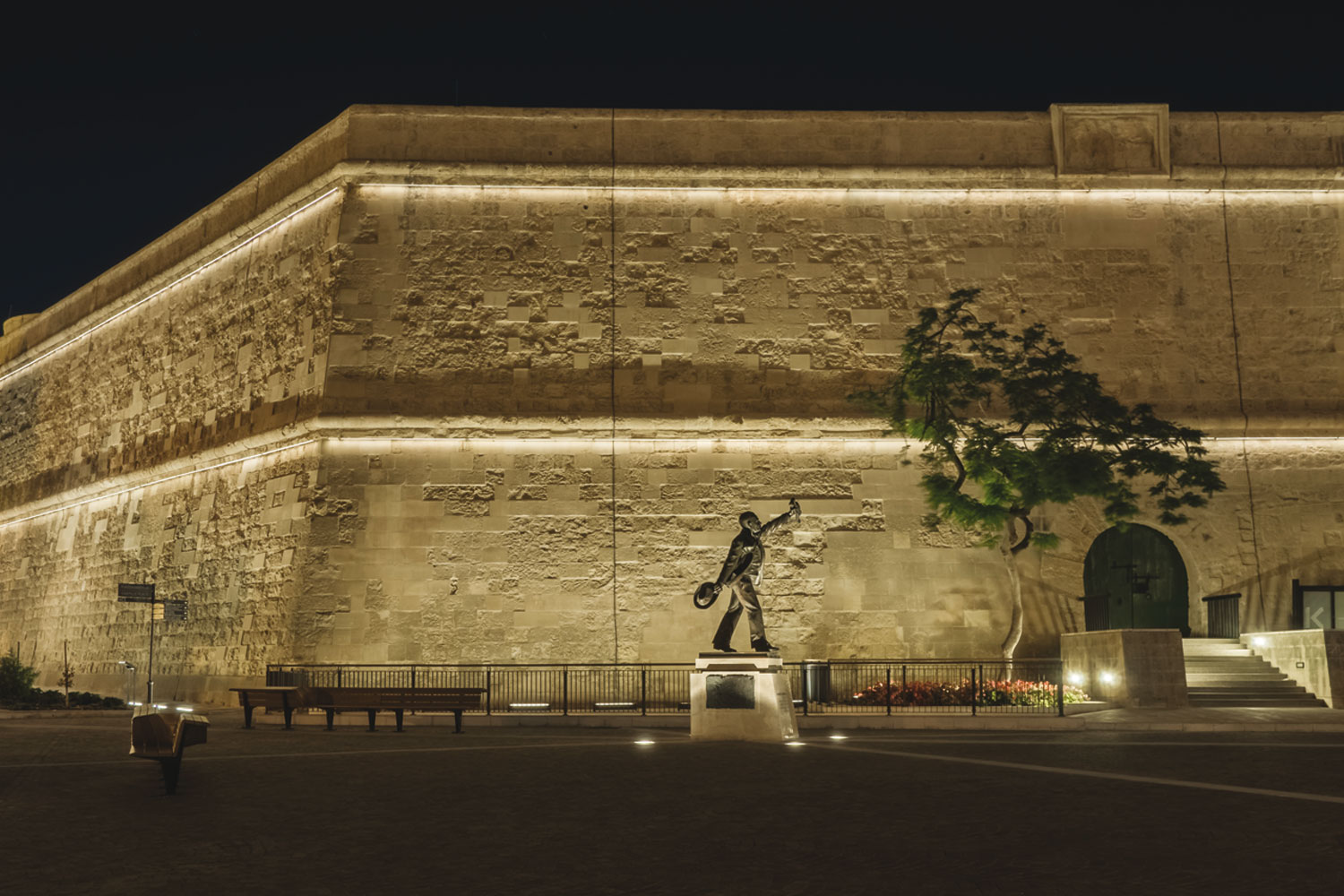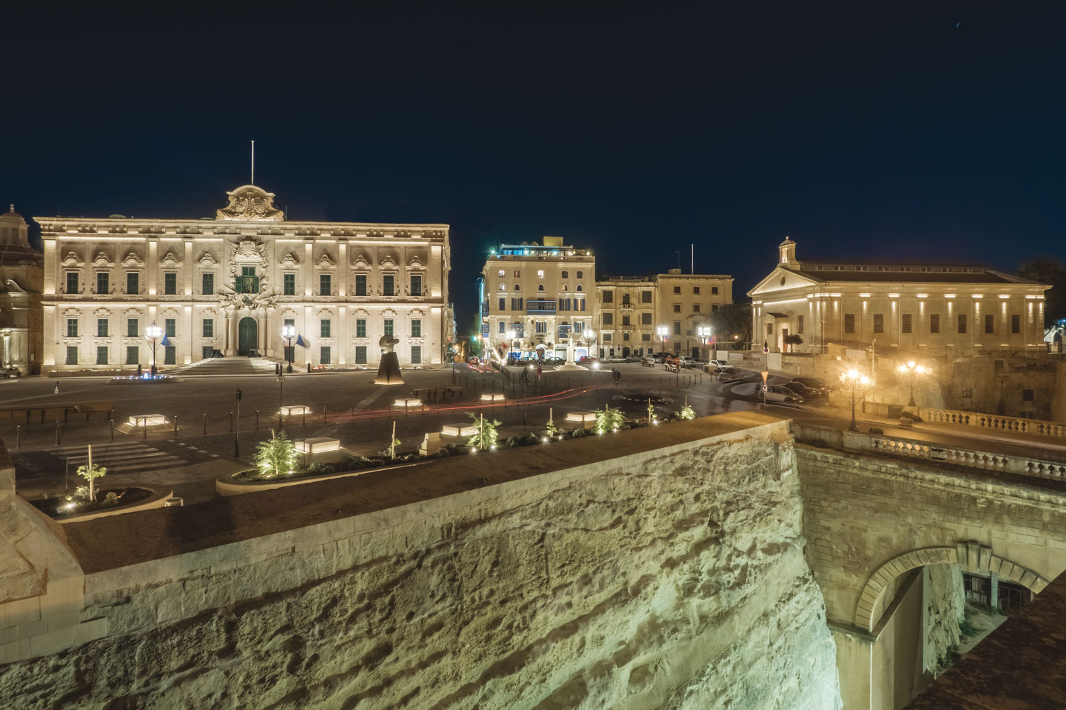 Il progetto illuminotecnico di Piazza Castille, a La Valletta, ha tenuto in considerazione la composizione della piazza e i suoi edifici circostanti.