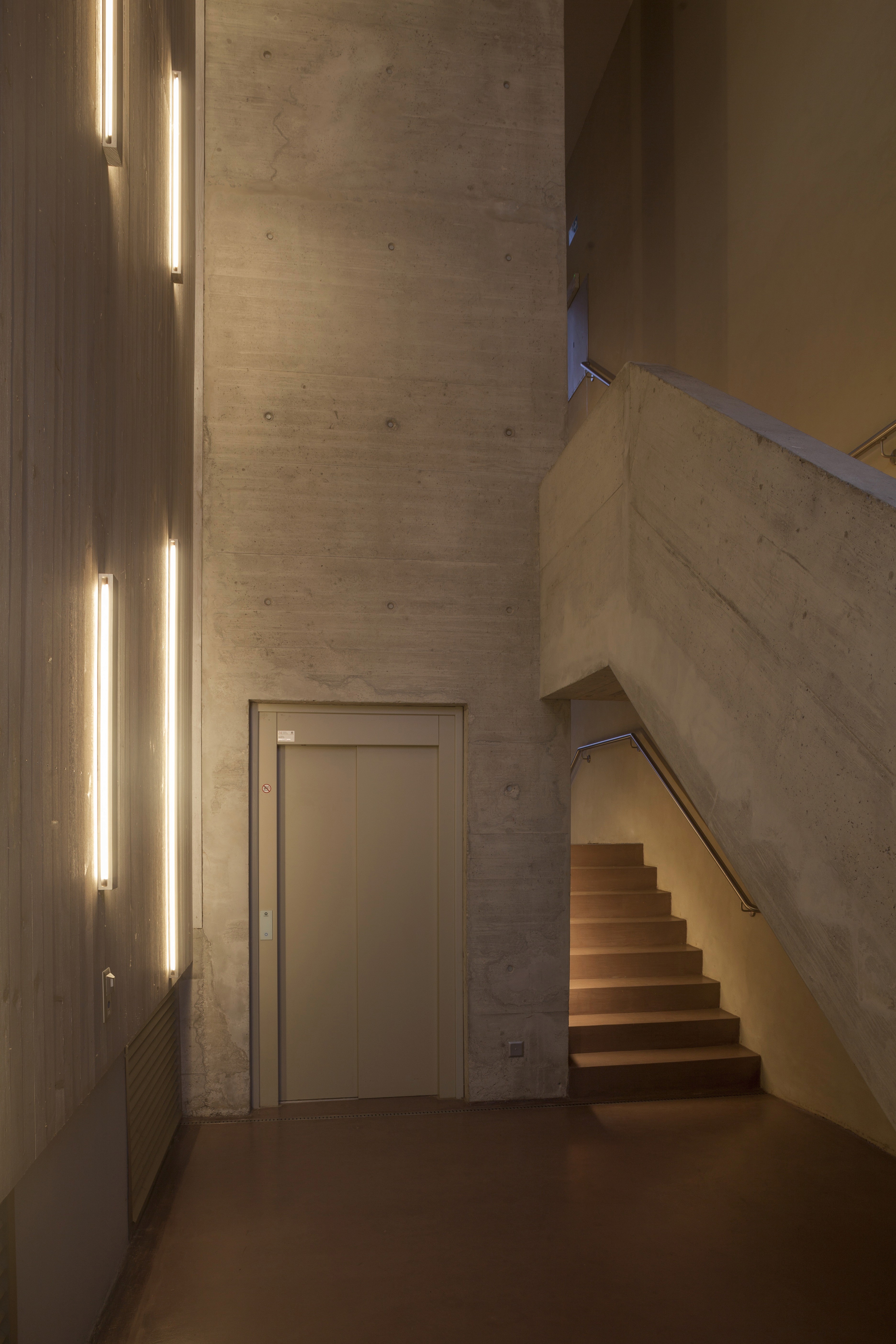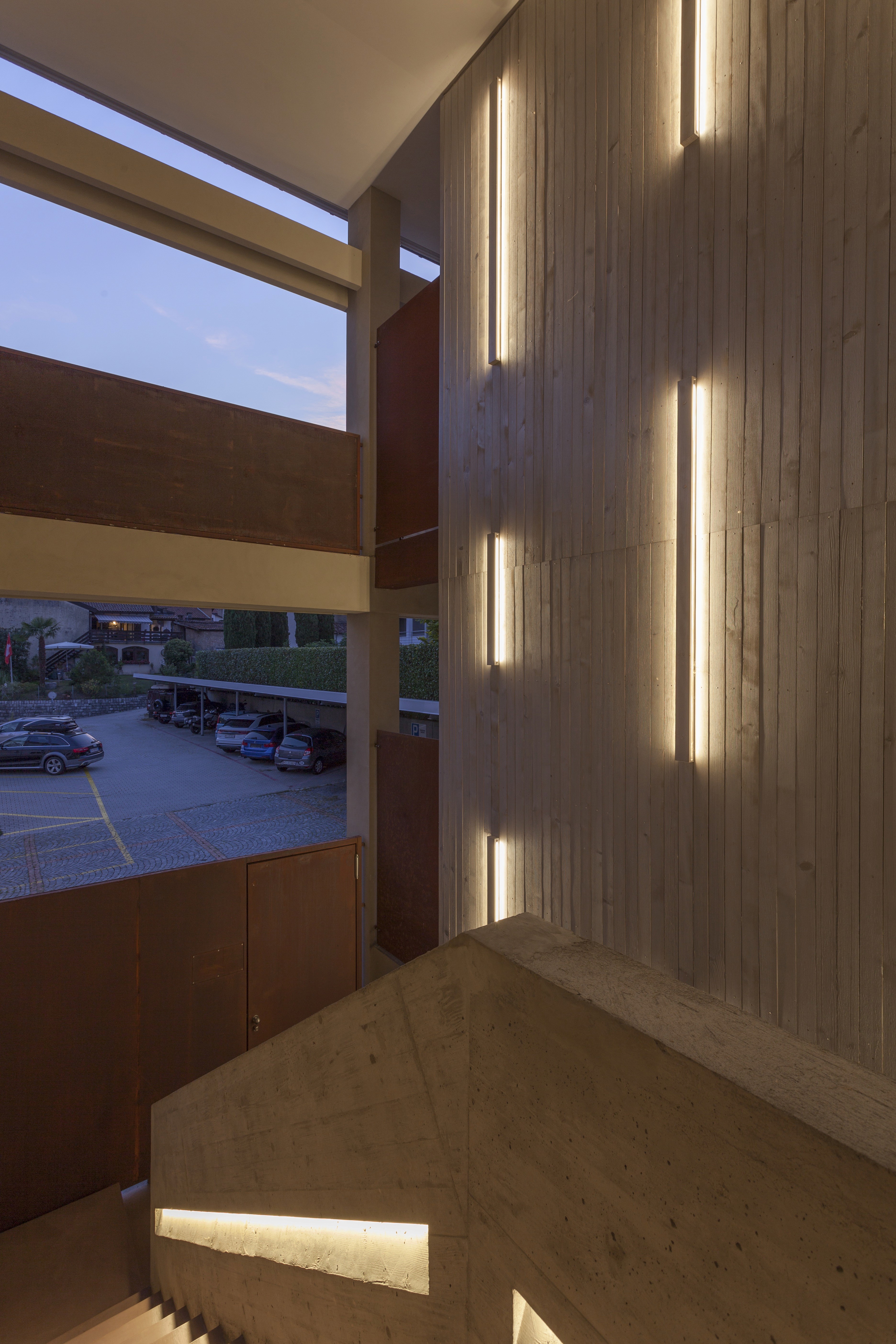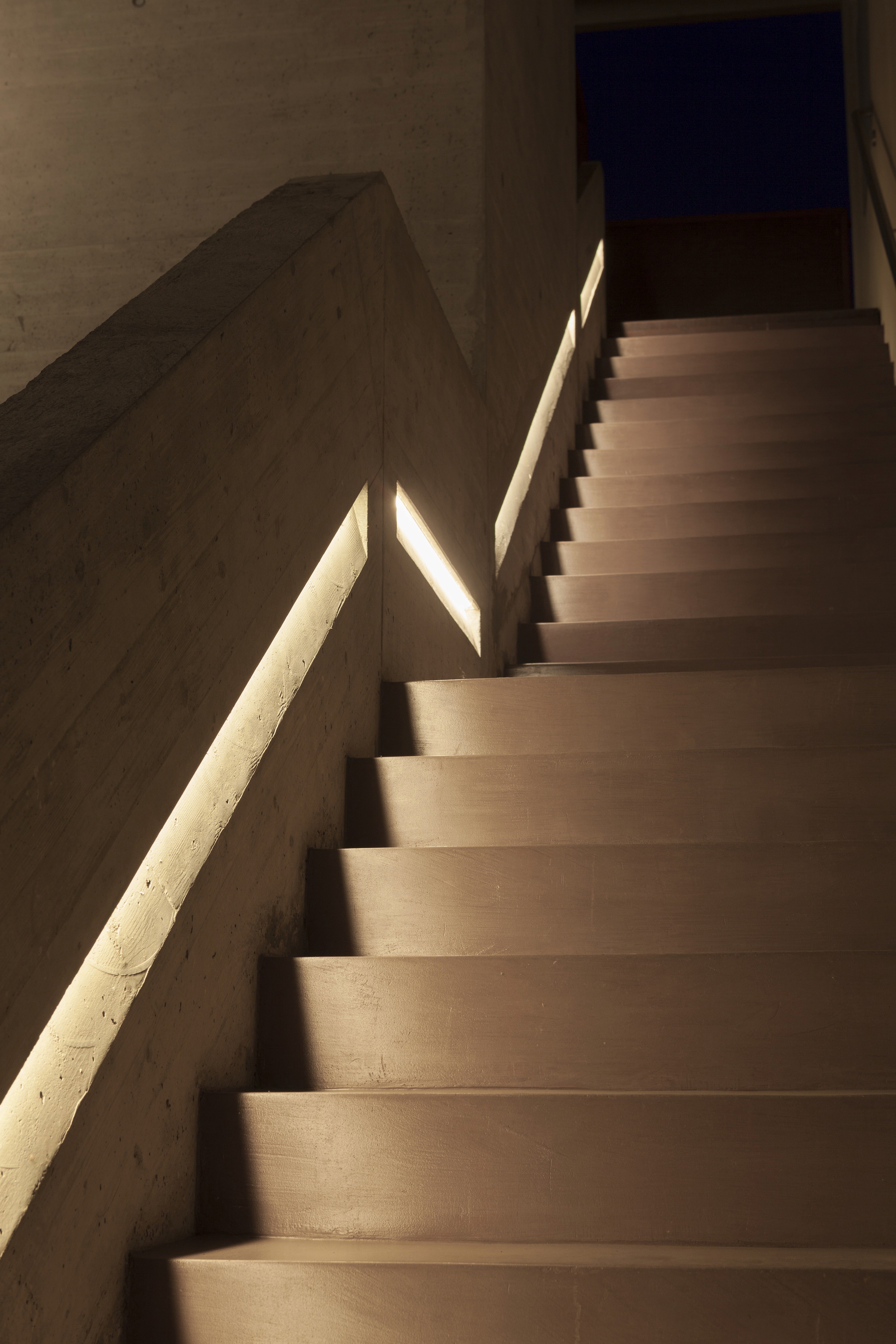 Le tecniche di illuminazione sottolineano l’identità dell’edificio, esaltandone i materiali di costruzione: alcune tecniche di illuminazione sono state realizzate con lo stesso materiale delle facciate della residenza, altre invece sono state ricavate creando un risparmio nel parapetto in cemento. L’effetto ottenuto permette una pulizia visiva dei materiali e determina un’integrazione totale della luce nell’architettura.