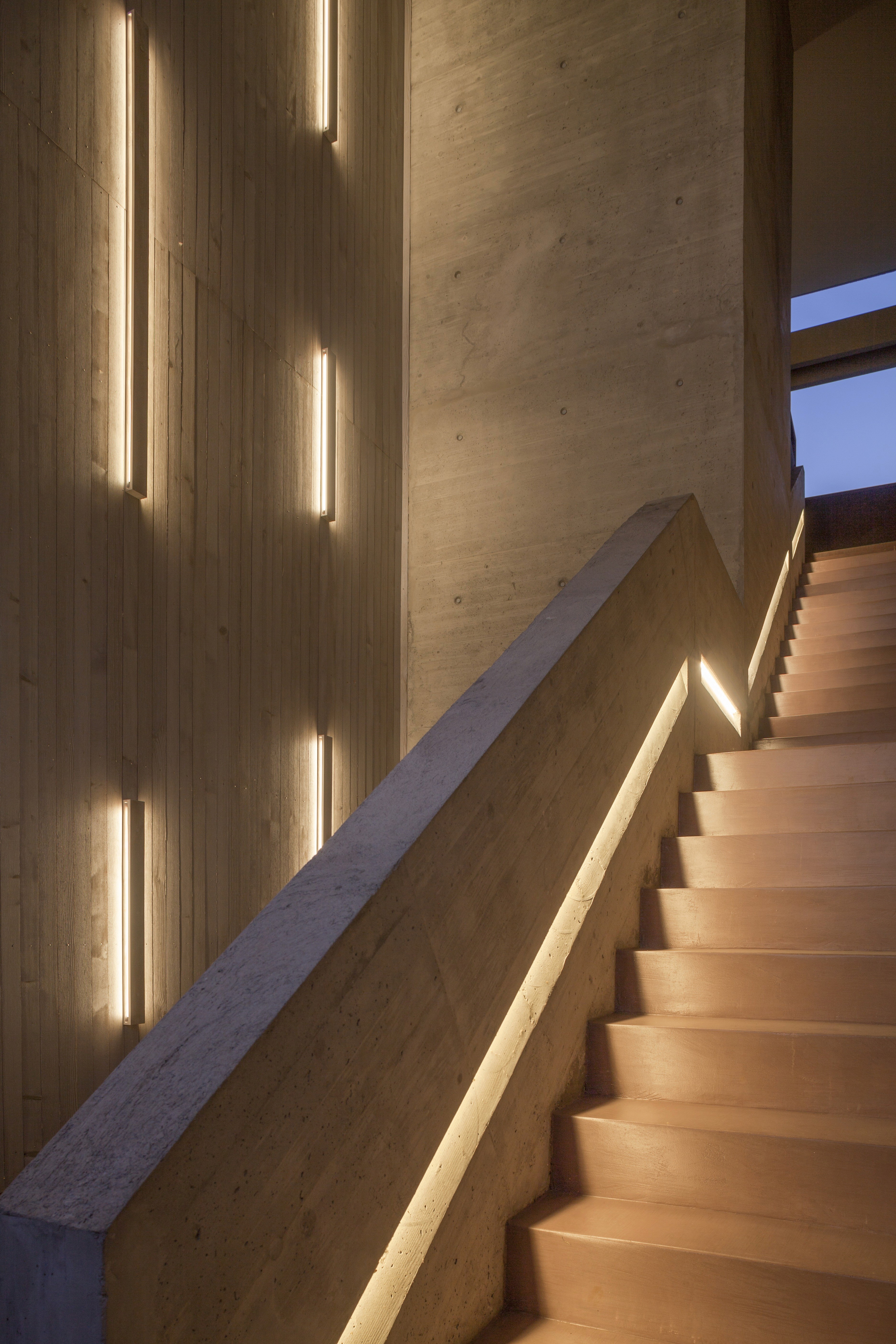 La luce è stata studiata in modo da integrarsi totalmente nell’architettura, per poter scomparire alla vista durante le ore diurne e rivelarsi completamente di notte.