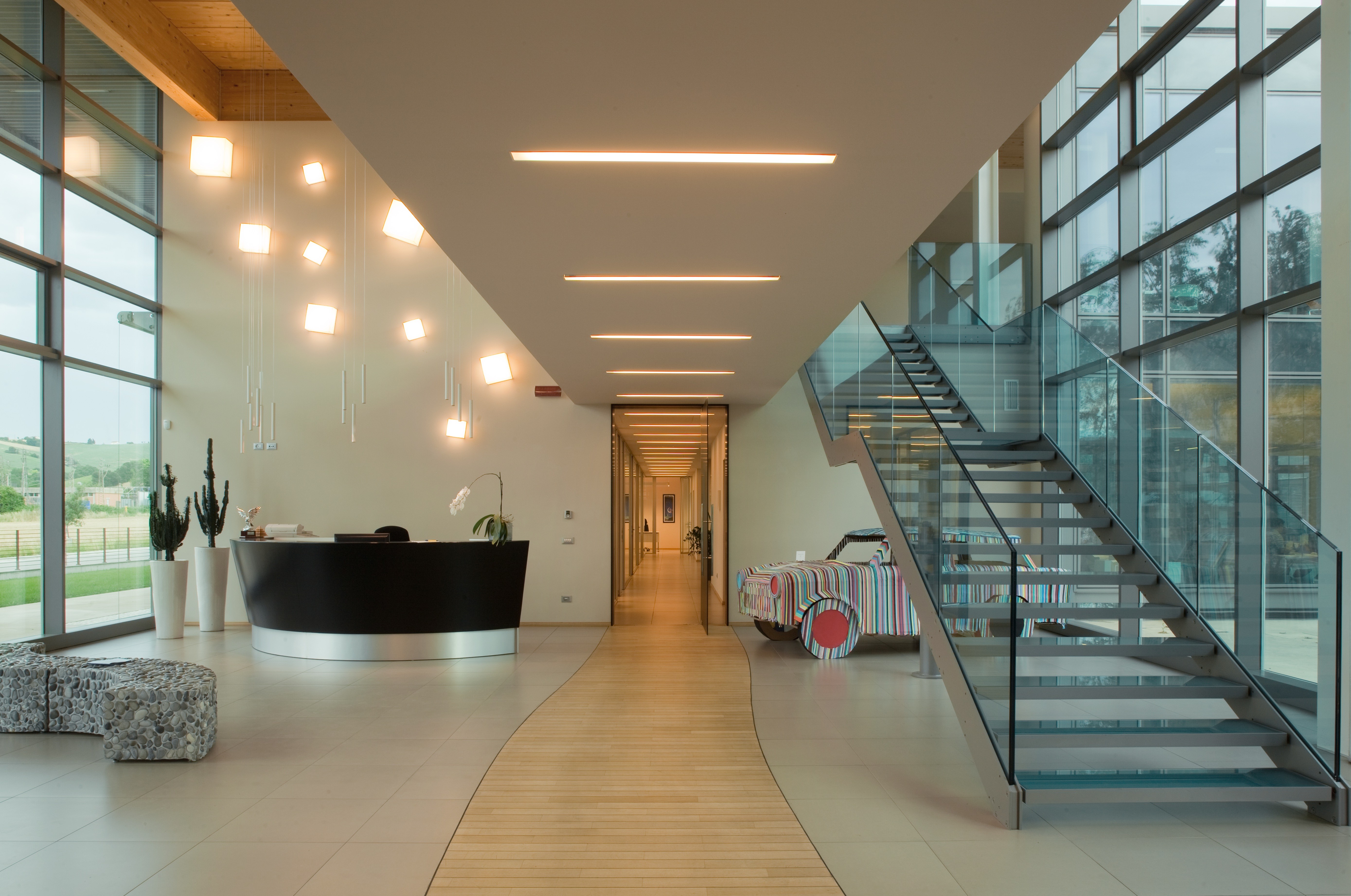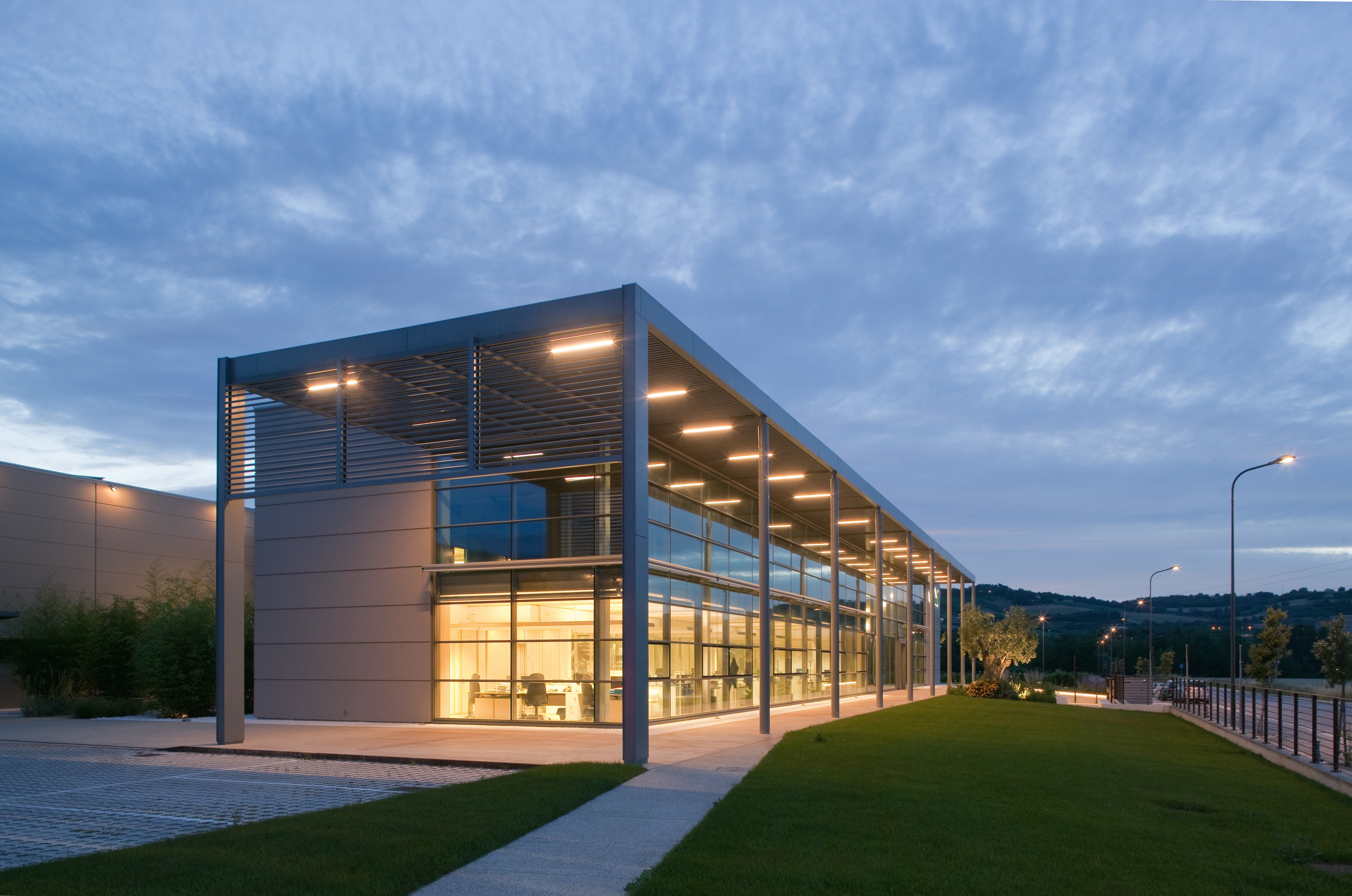 L'attenzione all'ambiente e al paesaggio circostante ha guidato i progettisti nella scelta di materiali naturali, soprattutto legno e vetro, e di particolari soluzioni che hanno reso l'illuminazione dell'edificio una sfida impegnativa.
